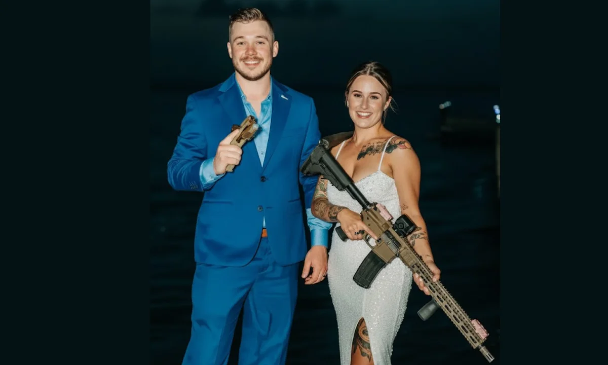 The announcement of Kyle Rittenhouse marriage was accompanied by a series of wedding photos that immediately polarized social media. In the images, the couple is seen on a beach, appearing “dapper and happy,” but the traditional romantic imagery is heavily accented by the couple’s unapologetic commitment to firearms.